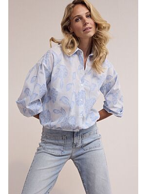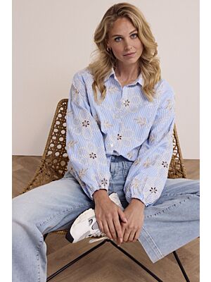 Tramontana Flower Embroidery Blouse Breezy Blue