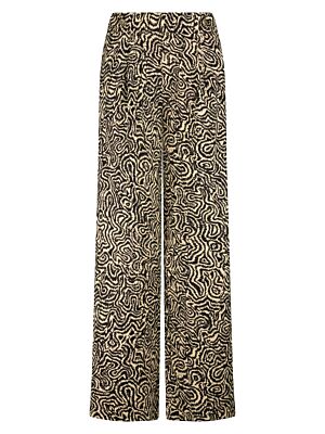 Tramontana Trousers Wandering Lines Print Blacks
