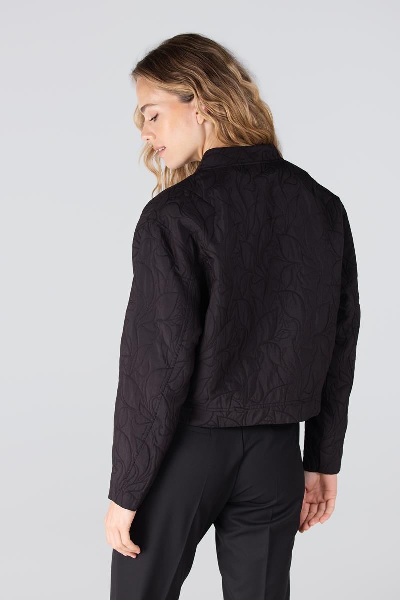 Het Jara jasje is een opvallend item met een vrouwelijke twist. De stof is verrijkt met een bloemige jacquard, wat zorgt voor een subtiel reliëf en elegante uitstraling. De opstaande kraag en zilverkleurige metalen rits geven de jas een stoer accent. Afgewerkt met praktische strookzakjes is dit een perfecte combinatie van stijl en comfort.98% Polyester, 2% Elastaan.