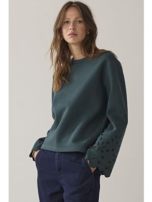 Summum Trui Embroidered Sleeve Emerald Green
