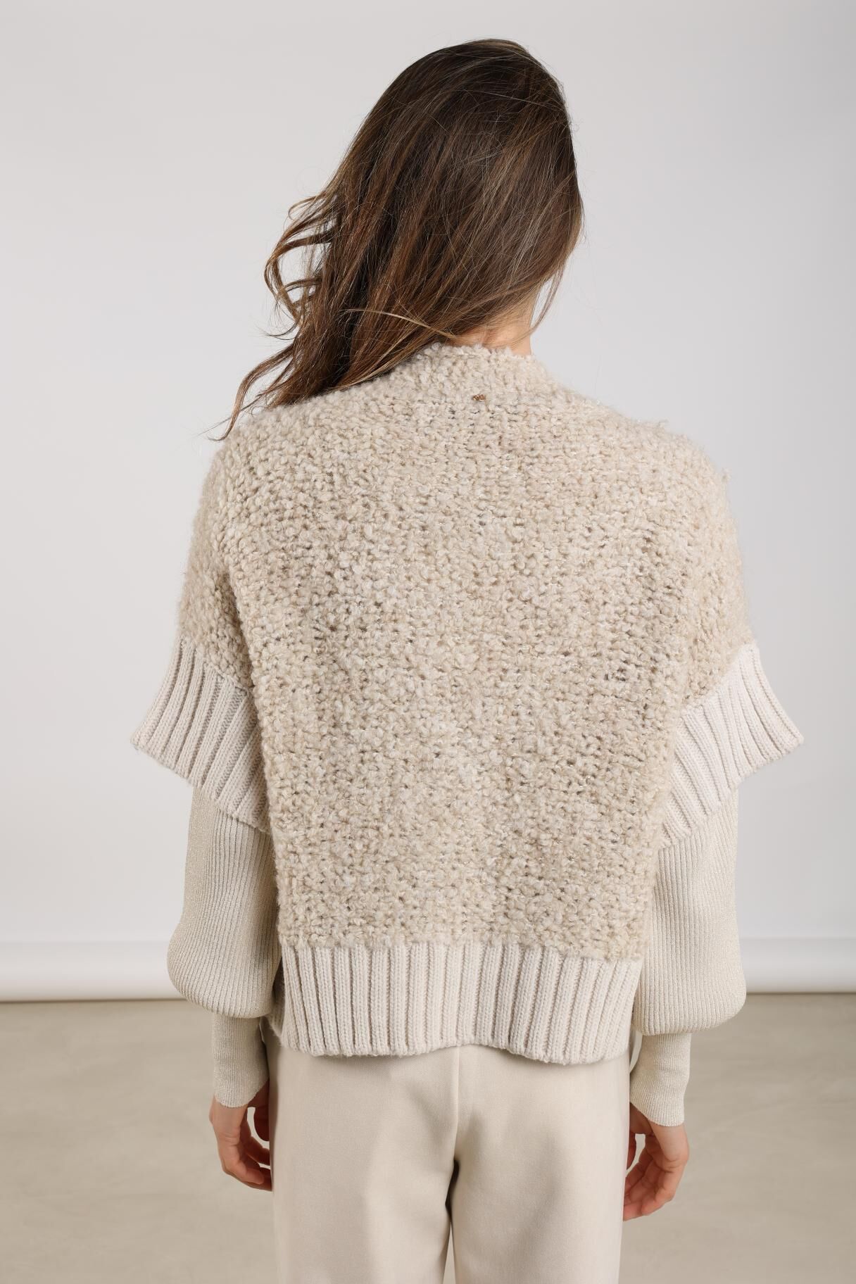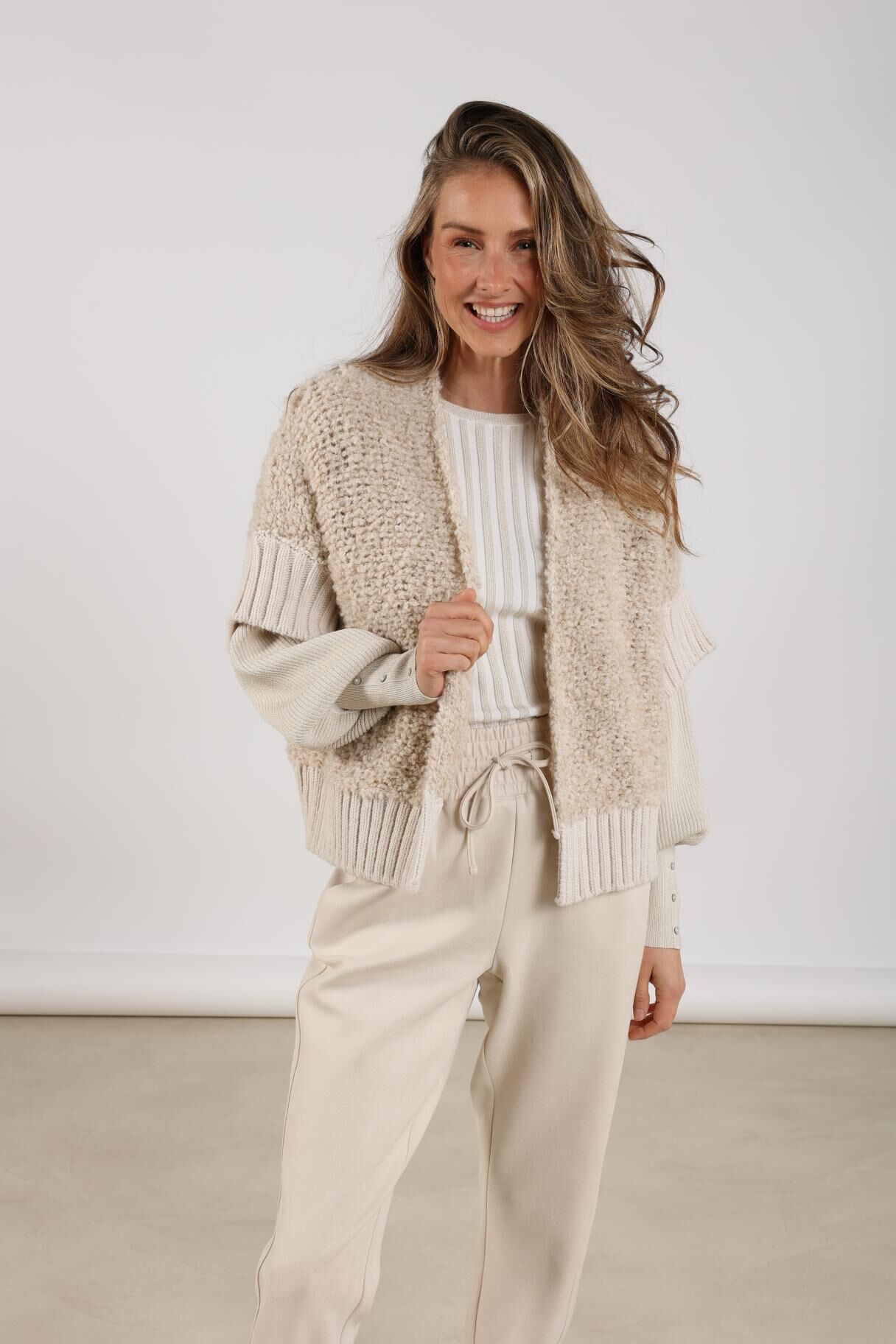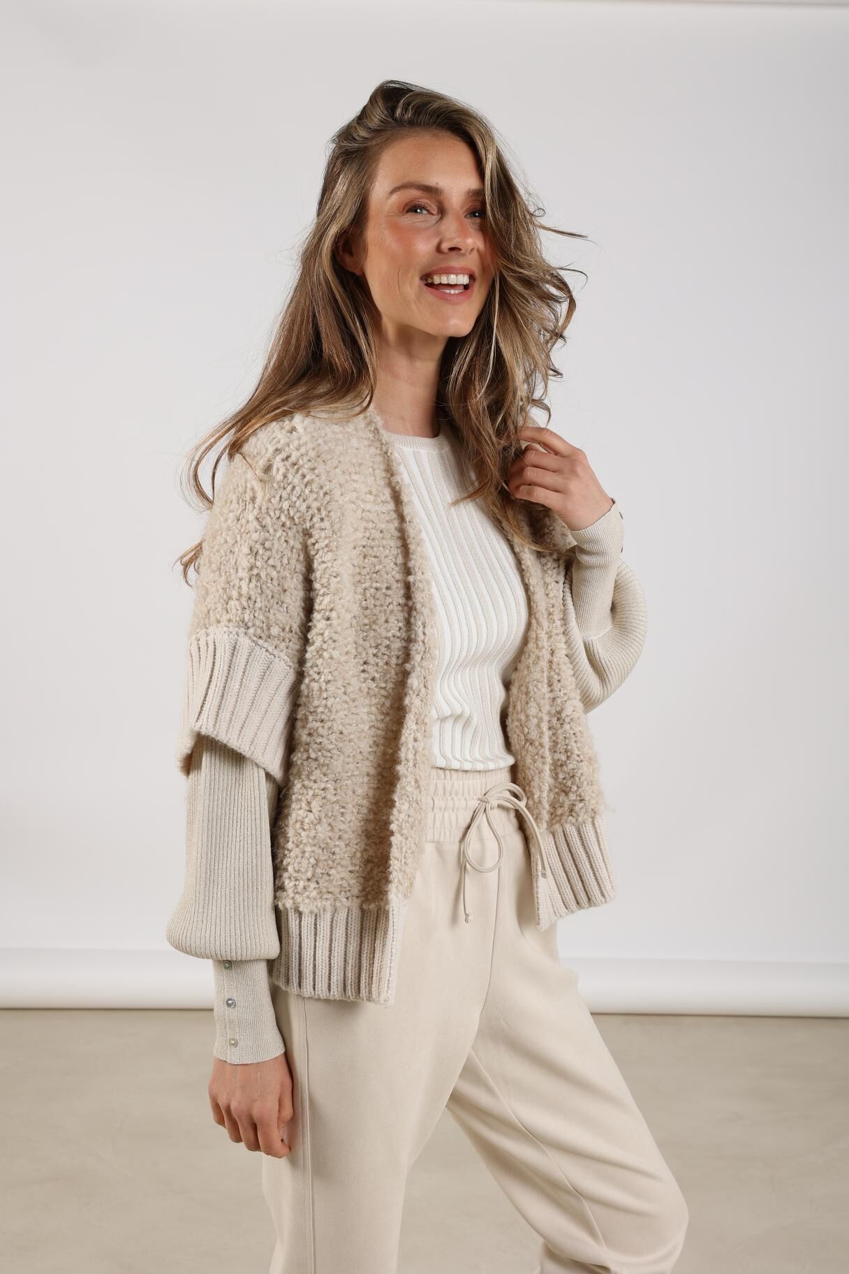 De Belle Cardigan is een luchtig vestje in beige tint, gemaakt van een zachte blend met o.a. mohair voor een luxe feel. De driekwart mouwen en iets lossere pasvorm geven het vest een elegante en comfortabele uitstraling.60% Acryl, 18% Polyester, 15% Mohair, 7% Wool