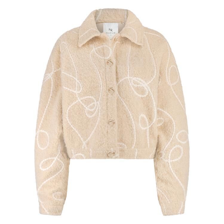 De Milou Jacket is een elegante eyecatcher jasje in beige met een verfijnd geborduurd patroon. De pasvorm is op maat maar iets losser, wat zorgt voor een comfortabele én stijlvolle look. Draag dit bijzondere jasje over een basic outfit voor een subtiele statement, perfect voor zowel overdag als 's avonds.Shell: 100% Polyester, Lining: 100% Polyester