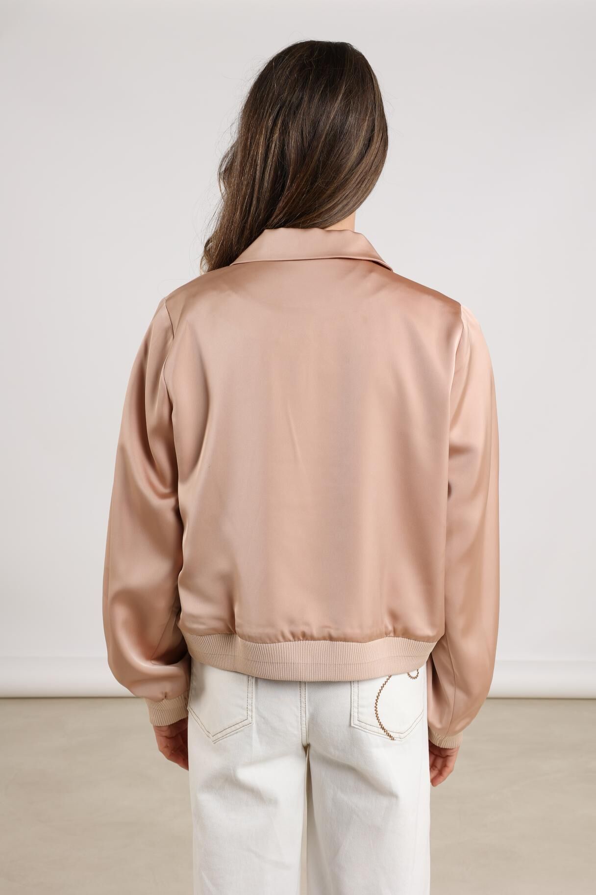 De Noa bomber is een trendy loose fit bomber jacket van licht glanzend materiaal met een luxe satijnlook. Deze stijlvolle bomber voegt een extra touch toe aan elke outfit. Shell: 100% Polyester, Lining: 100% Polyester.