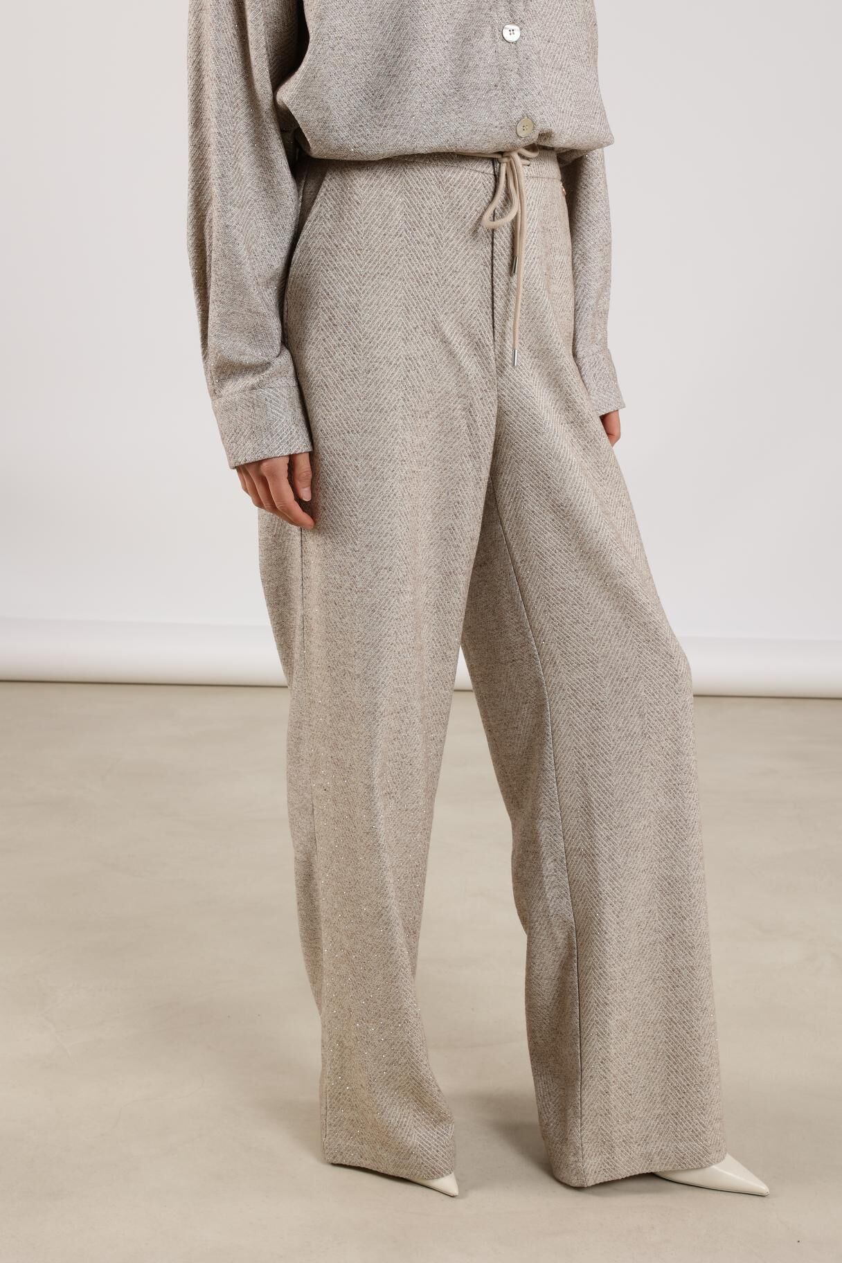 Deze broek is stijlvolle aanwinst voor je najaars garderobe. Versierd met subtiele strass steentjes voor een chique sparkle in het sand. De pasvorm is op maat, licht losvallend, en sluit mooi aan dankzij de knoopsluiting aan de bovenkant. Combineer met het bijpassende Lara blouse voor een elegante total look.100% Polyester.