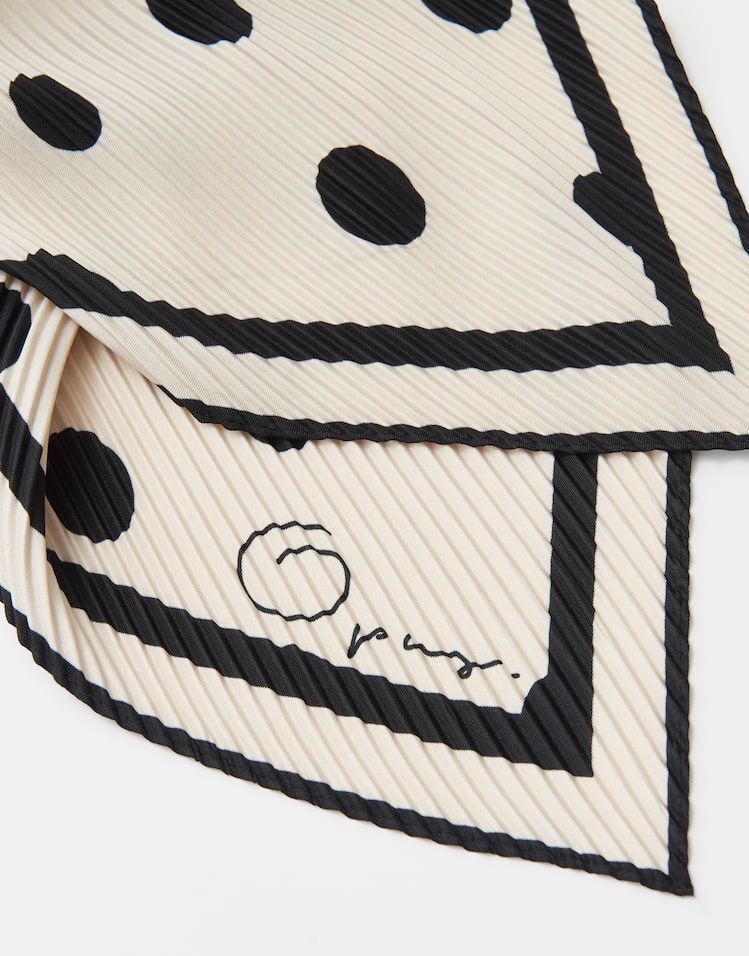 Het geplooide effect geeft diepte aan het zijdeachtige, glanzende materiaal, terwijl een creatieve mix van stippenpatronen het ontwerp tot een buitengewoon hoogtepunt maakt.100% Polyester