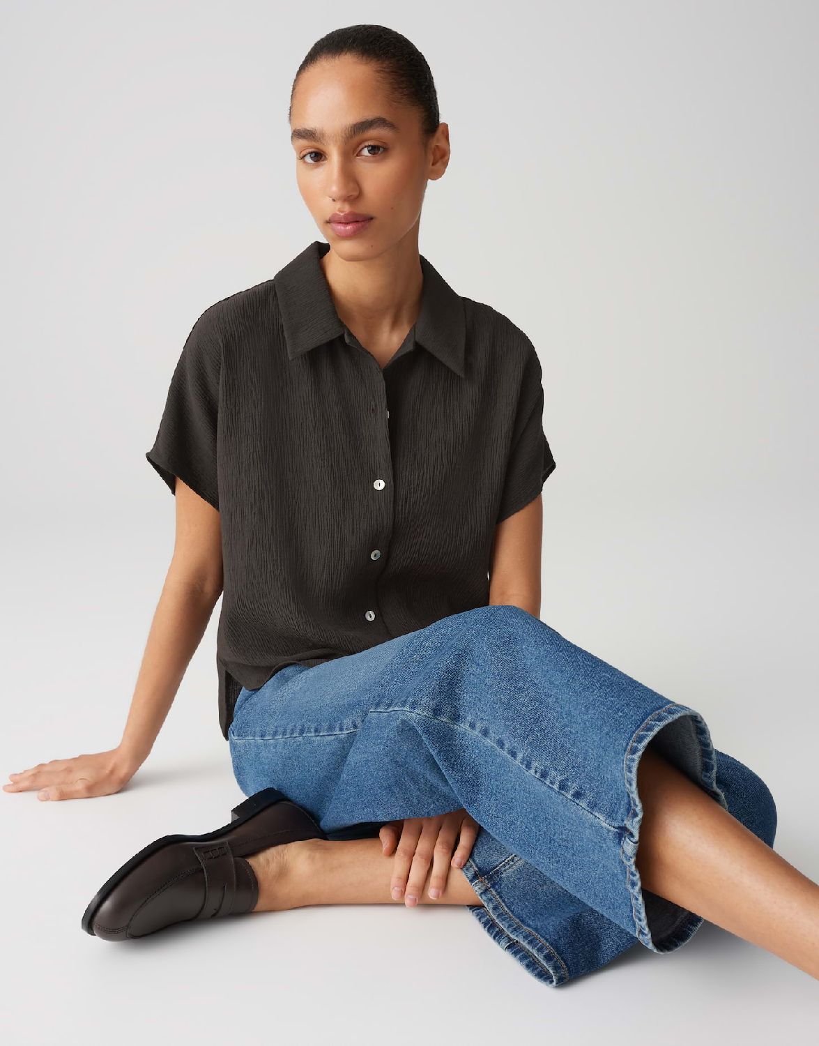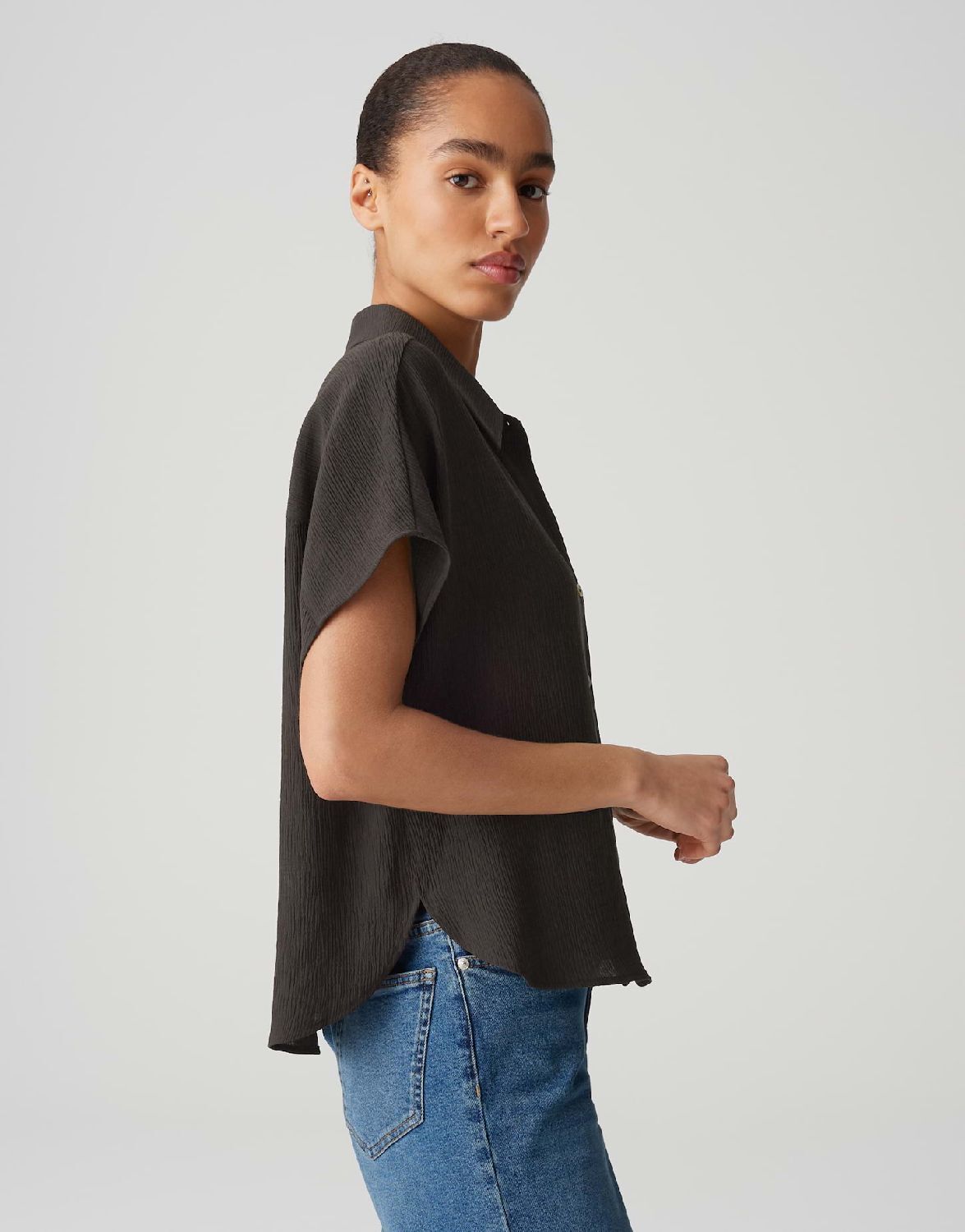 Deze overhemdblouse heeft een puur ontwerp en een dynamische kreuktextuur. Voor een moderne, ongecompliceerde look met een bijzondere textuur.87% Viscose, 13% Polyamide