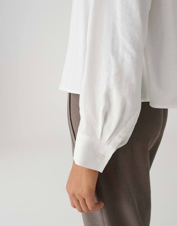 De semi-transparante Flowy overhemdblouse is licht en vloeiend in een fijne twill-look en voelt fluweelzacht aan. De vrouwelijke uitlopende A-lijn maakt het tot een veelzijdige allrounder die altijd een mooi figuur slaat, of je hem nu solo of in laagjes draagt.88% Modal, 12% Polyester.