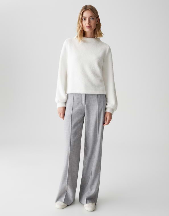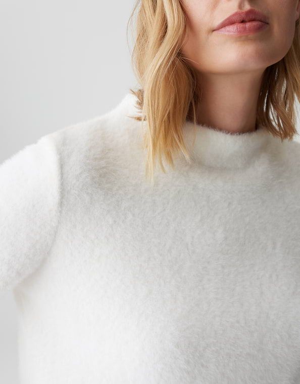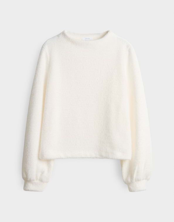 Delicaat fantasiegaren met een pluizige textuur speelt rond het silhouet en maakt van dit sweatshirt een echte blikvanger. De ingetogen snit en de volumineuze ballonmouwen benadrukken het moderne statement-karakter.73% Polyamide, 27% Polyester
