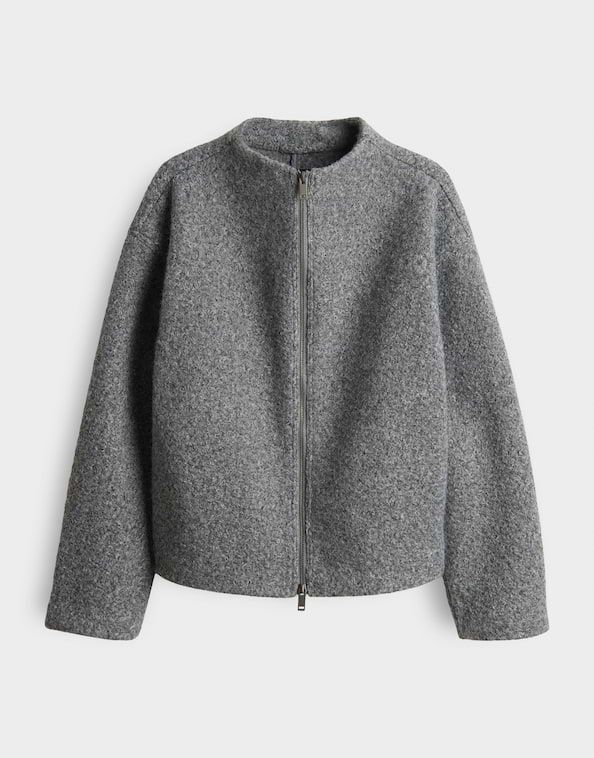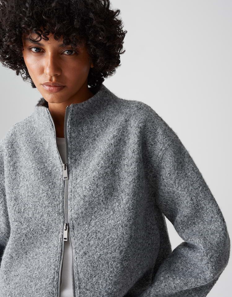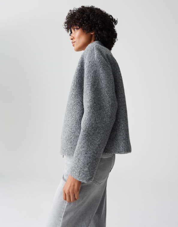 Dit korte boucléjack is ongevoerd, waardoor het modern en licht aanvoelt. Met zijn 2-weg ritssluiting en ingetogen snit is het veelzijdig en kan het zowel binnen als buiten worden gedragen.100% Polyester.