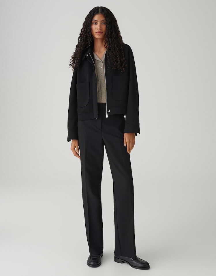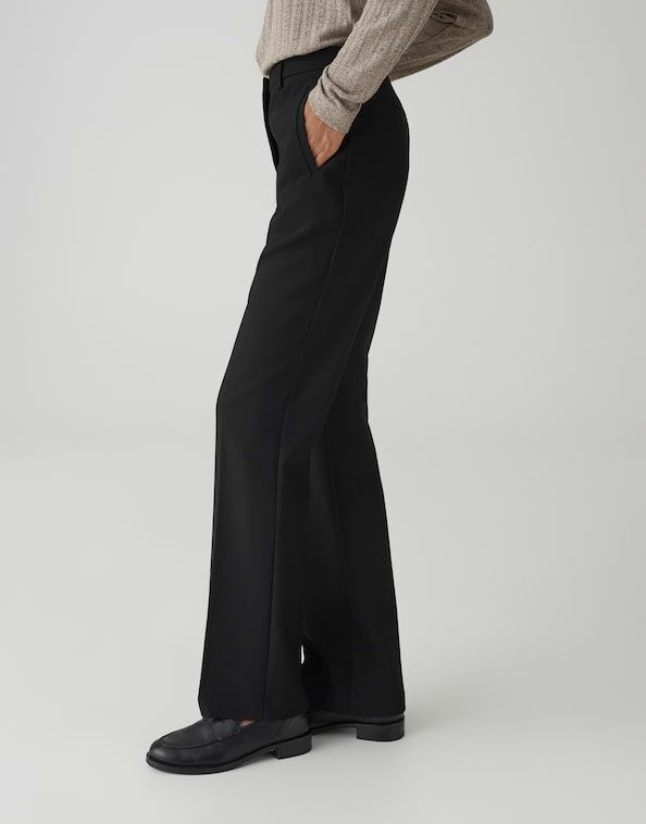Terug naar de jaren 70: de nieuwe retro flared broek maakt indruk met zijn casual vloerlengte en slim fit, met een licht uitlopende pijp vanaf de knie. De elastische tailleband aan de achterkant zorgt voor maximaal comfort en maakt de Maiga flared broek de perfecte metgezel voor een ontspannen look.77% Polyester, 18% Viscose, 5% Elasthaan.