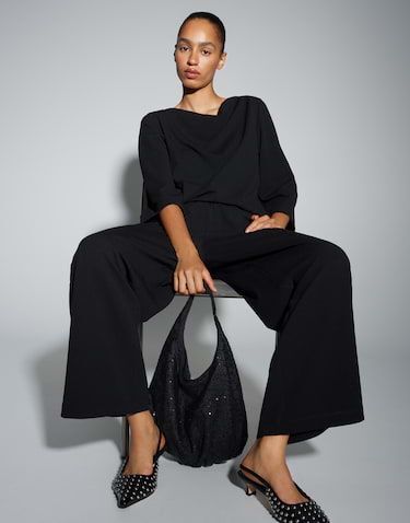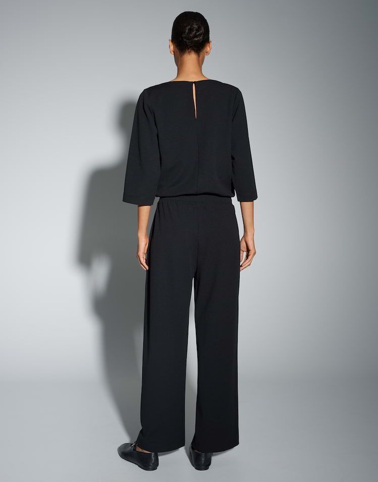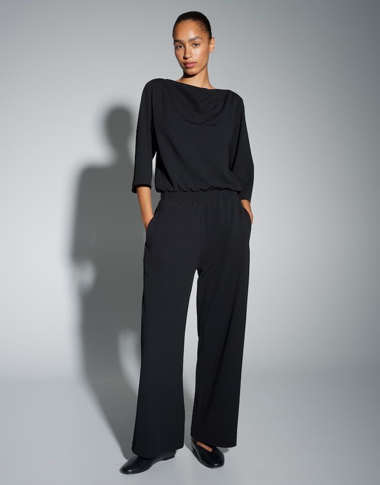 Deze jumpsuit van crêpe-jersey met een fijne textuur aan de buitenkant en een gladde binnenkant heeft een clean silhouet. De elastische tailleband maakt het een allrounder voor dag-tot-nacht looks.96% Polyester, 4% Elasthaan