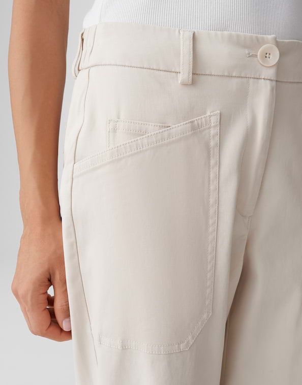 Subtiele structuur en vloeiende kwaliteit kenmerken het moderne silhouet van de city pant en brengen comfort in een elegante vorm. De elastische tailleband met aantrekkoord, het fijne keperstofoppervlak en de nauwkeurig geplaatste naden maken hem tot een veelzijdige stylingpartner die zorgt voor een ontspannen maar professionele look met een gebreide trui of blouse.62% Lyocell, 35% Katoen, 3% Elasthaan.