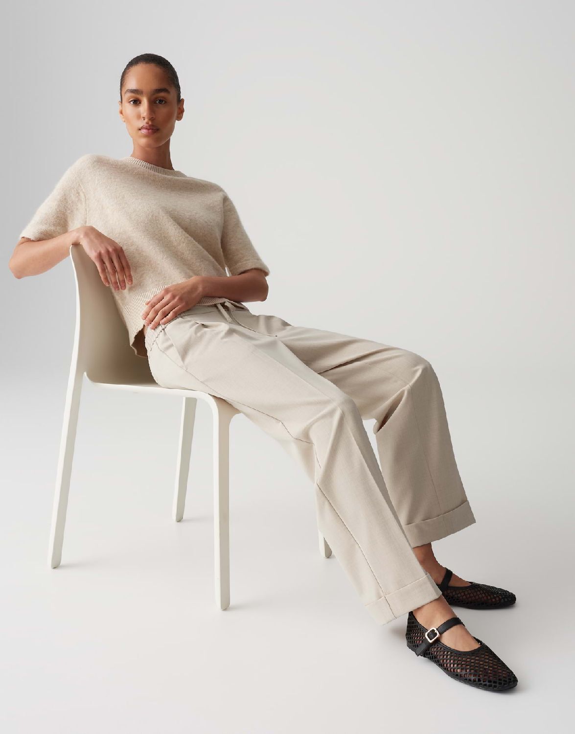 Deze city-broek in tweekleurige look heeft een recht model, afgesneden pijpen en vouwen voor een moderne zakelijke look. Een veelzijdige essential voor stijlvolle alledaagse en kantoorlooks.63% Polyester, 33% Viscose, 4% Elasthaan.