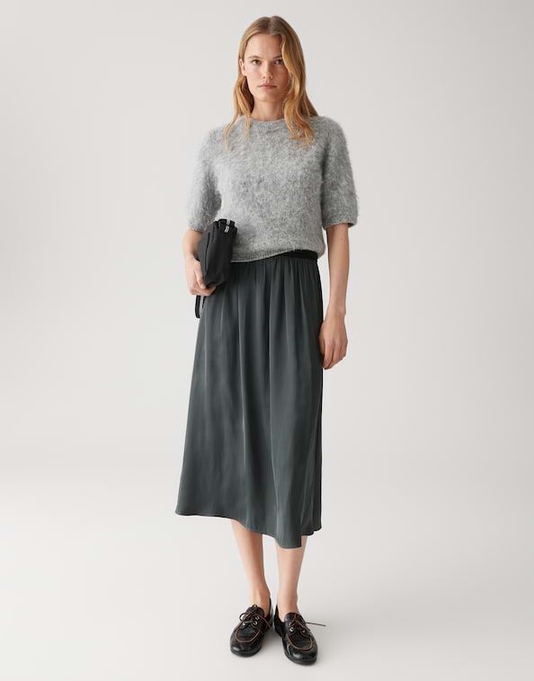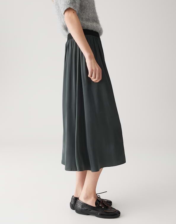 De zwierige A-lijn rok met een kleurcontrasterende elastische tailleband streelt het silhouet als een frisse wind. Ontspannen in een café of gestyled voor een evenement, dit trendstuk inspireert tot eindeloze outfitideeën.100% Polyester