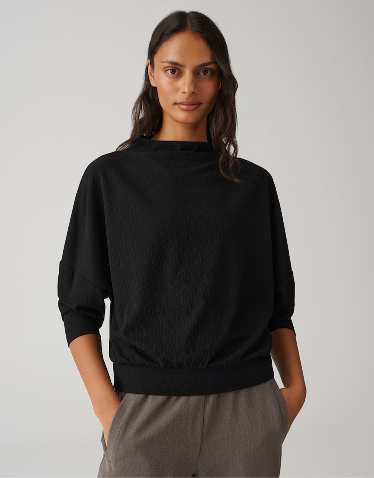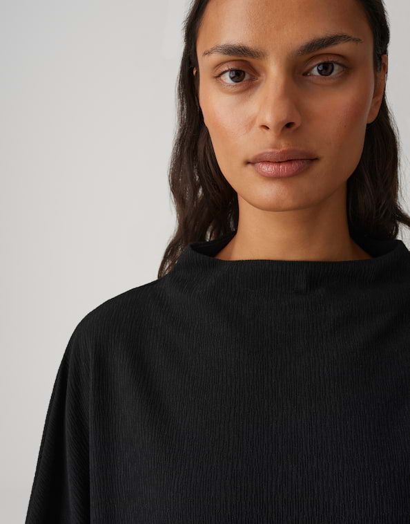 De rekbare, getextureerde jerseystof van de Sifresh-top zorgt voor aangenaam comfort, terwijl de wijde vleermuishalslijn en taps toelopende zoom een moderne, vrouwelijke look oproepen.97% Polyester, 3% Elasthaan.