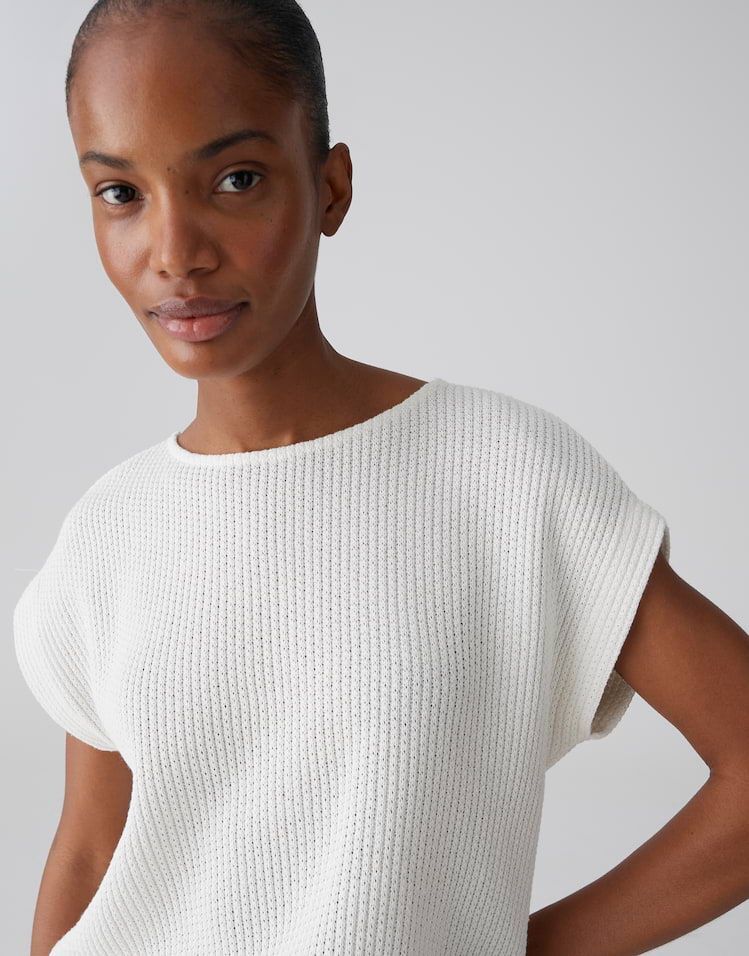 Het moderne ontwerp en de luchtige snit geven de mouwloze jersey top Sofrano een frisse, lichte uitstraling. De top met gebreide look kan casual worden gedragen met jeans of als ongecompliceerd laagje onder een blouson of vest.50% Katoen, 50% Polyester.