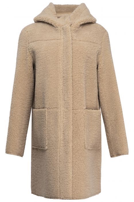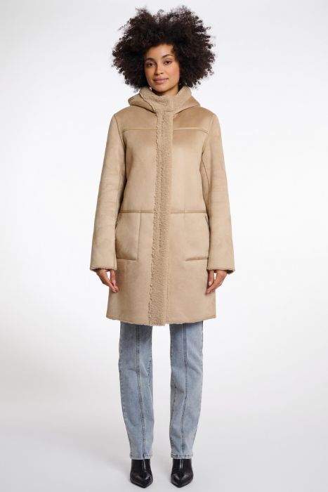 De jas is reversible. De teddy zijde van de jas is voorzien van twee opgestikte zakken. De suède zijde van de jas is voorzien van twee ritszakken. De jas is gevoerd en wordt gekenmerkt door de teddy en suède stof. 100% Polyester