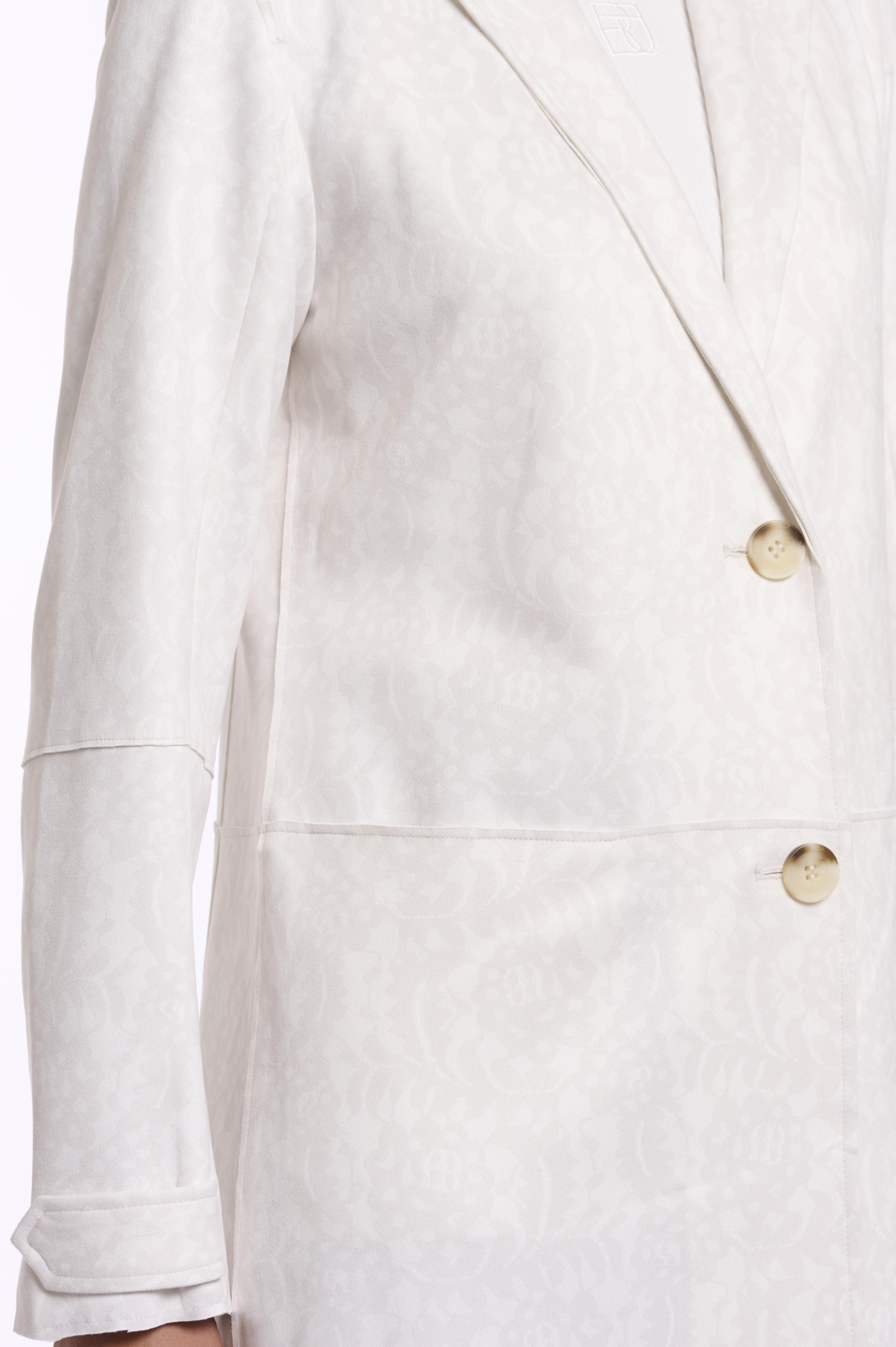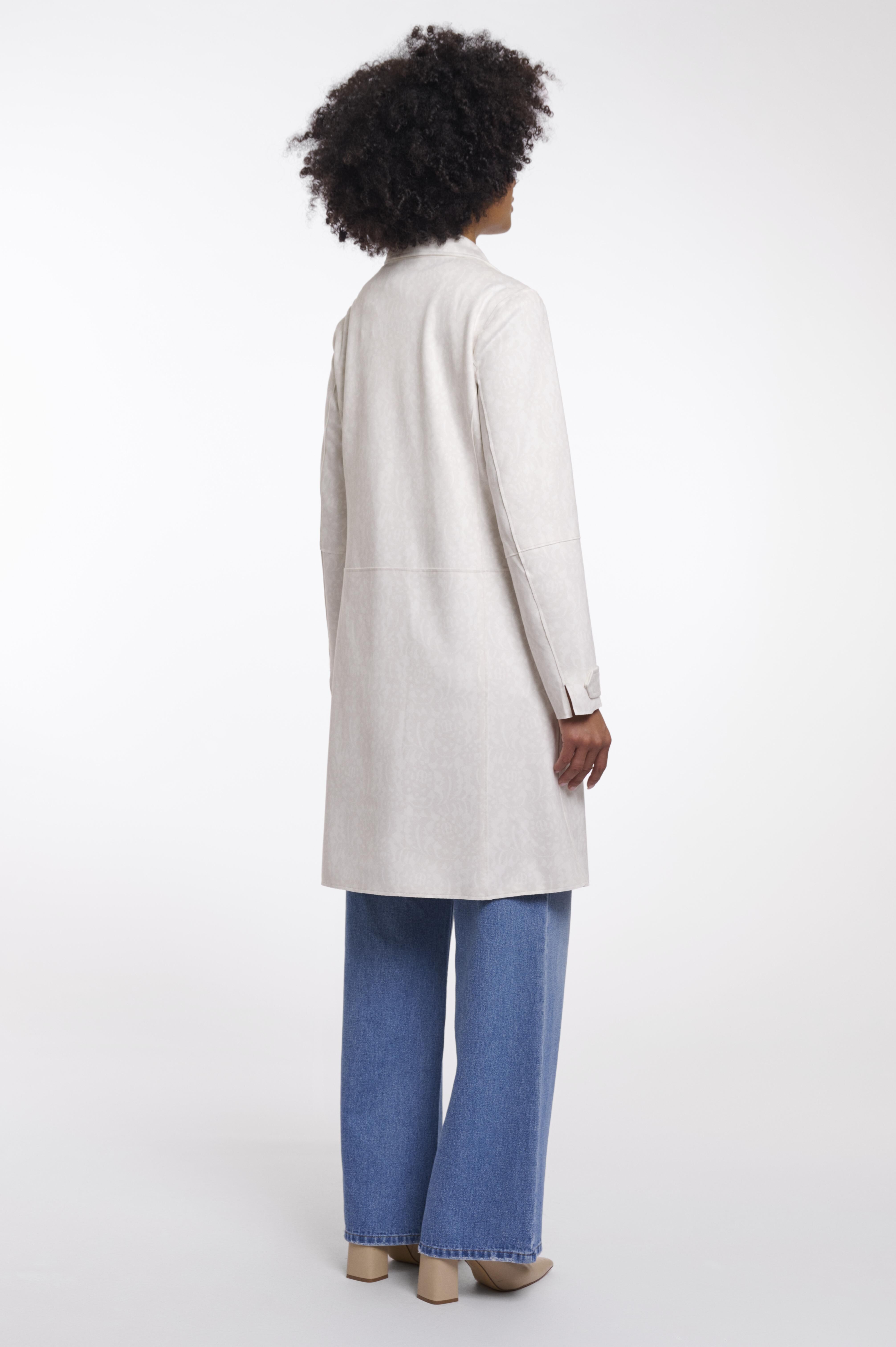 Faux suède single breasted coat, snow white lace.Deze elastische en zachte coat heeft twee knoopsluitingen aan de voorkant, twee open zakken aan de voorkant en splitdetails bij de manchetten. De perfecte coat om je dagelijkse look mee af te maken.92% polyester, 8% elastaan.100% polyester