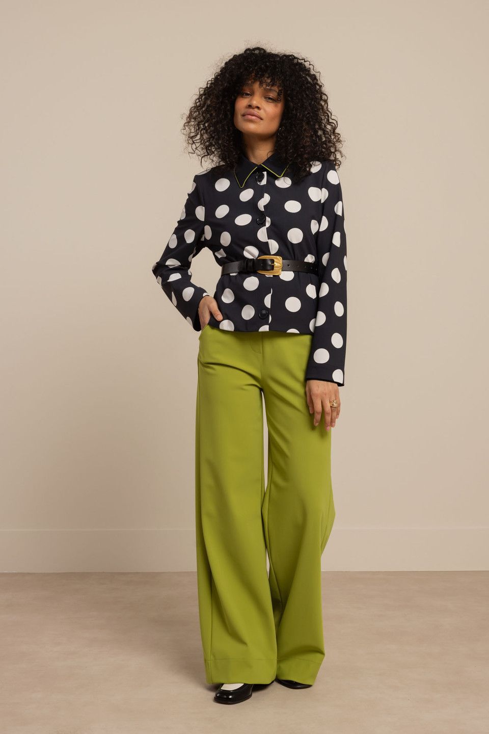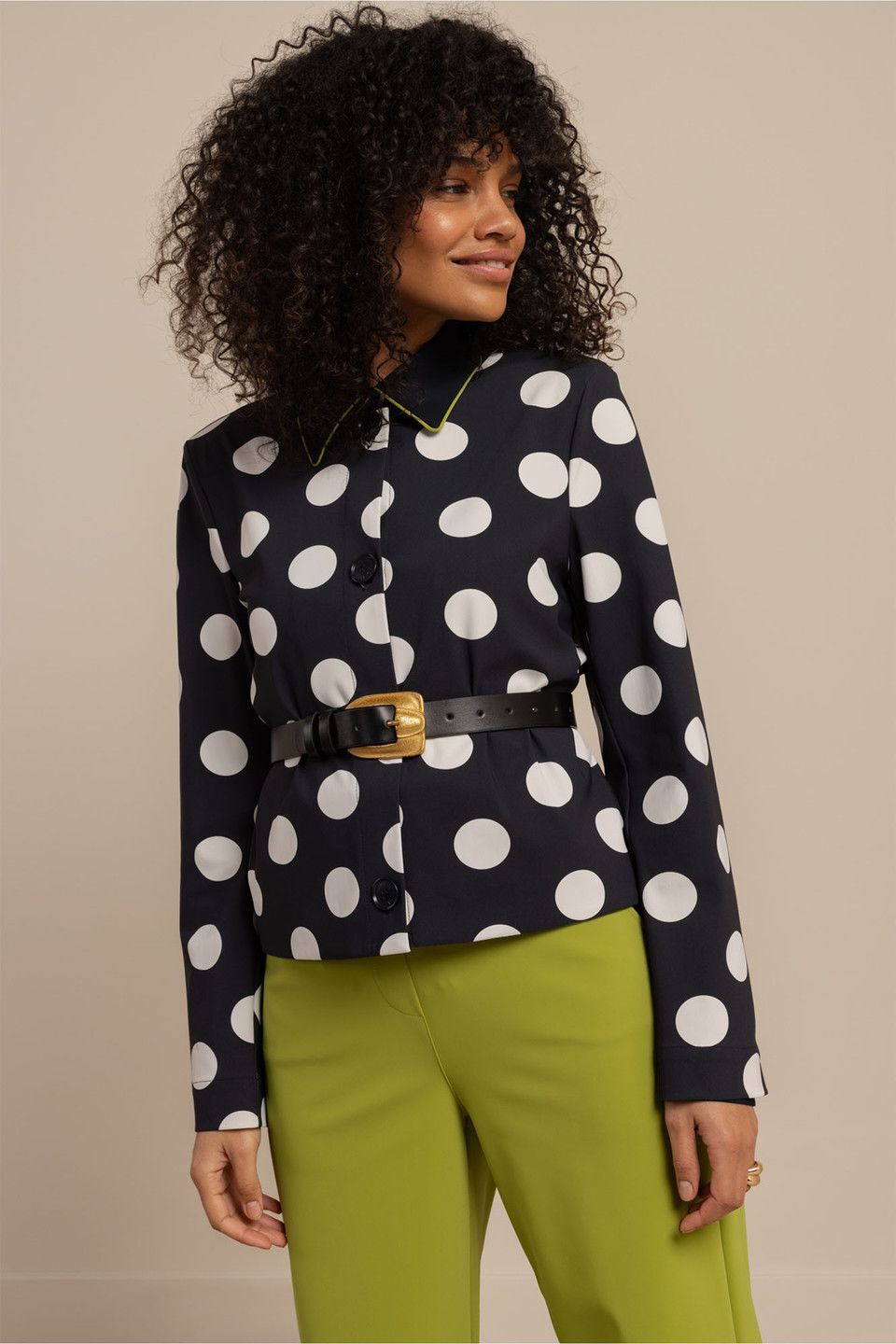 Het Charlot polkadot jacket van Studio Anneloes is een opvallend jasje met een vrouwelijke en grafische uitstraling. De speelse combinatie van Dark Blue met Kit-kleurige stippen geeft het item een uitgesproken karakter, terwijl de klassieke pasvorm zorgt voor balans en draagcomfort.74% Polyamide, 26% Elastaan.