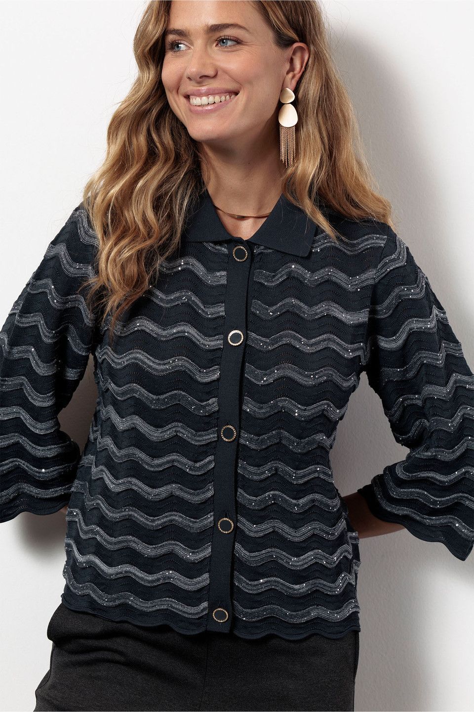 Til je outfit naar een hoger niveau met de Jacy sequins cardigan van Studio Anneloes. De elegante ajourstructuur, glinsterende details en vrouwelijke pasvorm maken van dit vest een feestelijke eyecatcher die je ook moeiteloos in je dagelijkse look integreert.62% Viscose, 28% Polyamide, 8% Metallic garen, 2% Polyester;.