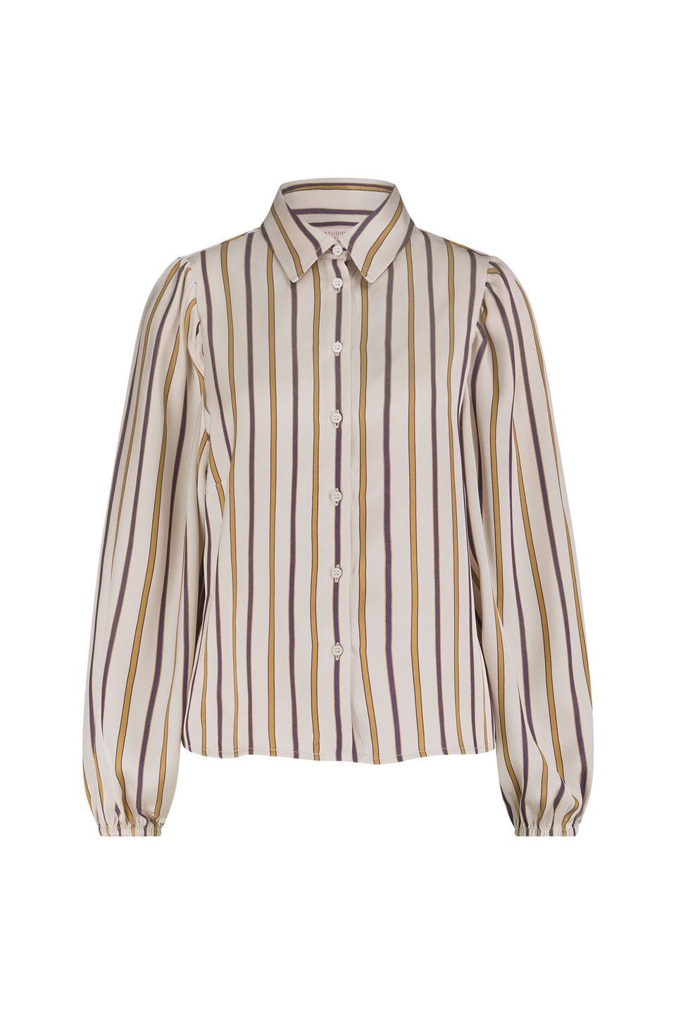 De Lina stripe blouse van Studio Anneloes brengt een frisse, vrouwelijke look in je garderobe. Deze blouse in Caramel, Ink Blue en Ecru combineert een speelse streep print met een tijdloze pasvorm. De lichte viscose, pofmouwen en klassieke kraag zorgen voor een elegante en comfortabele uitstraling.100% Viscose.