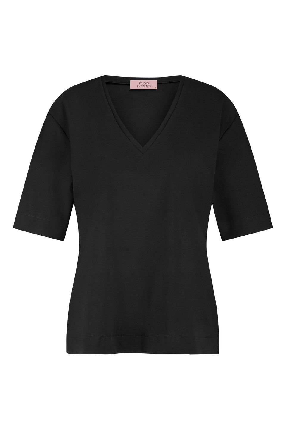 Het Roller shirt van Studio Anneloes is jouw go-to basic met een vrouwelijke twist. Dankzij de diepe v-hals en de soepele travelstof voelt dit shirt luchtig en stijlvol aan. In Black is het een perfecte basis voor eindeloos combineren.62% recycled polyamide, 26% elastaan, 12% polyamide.