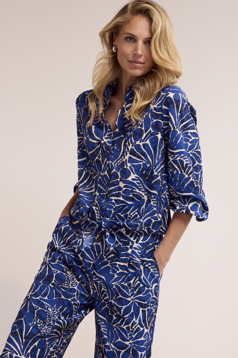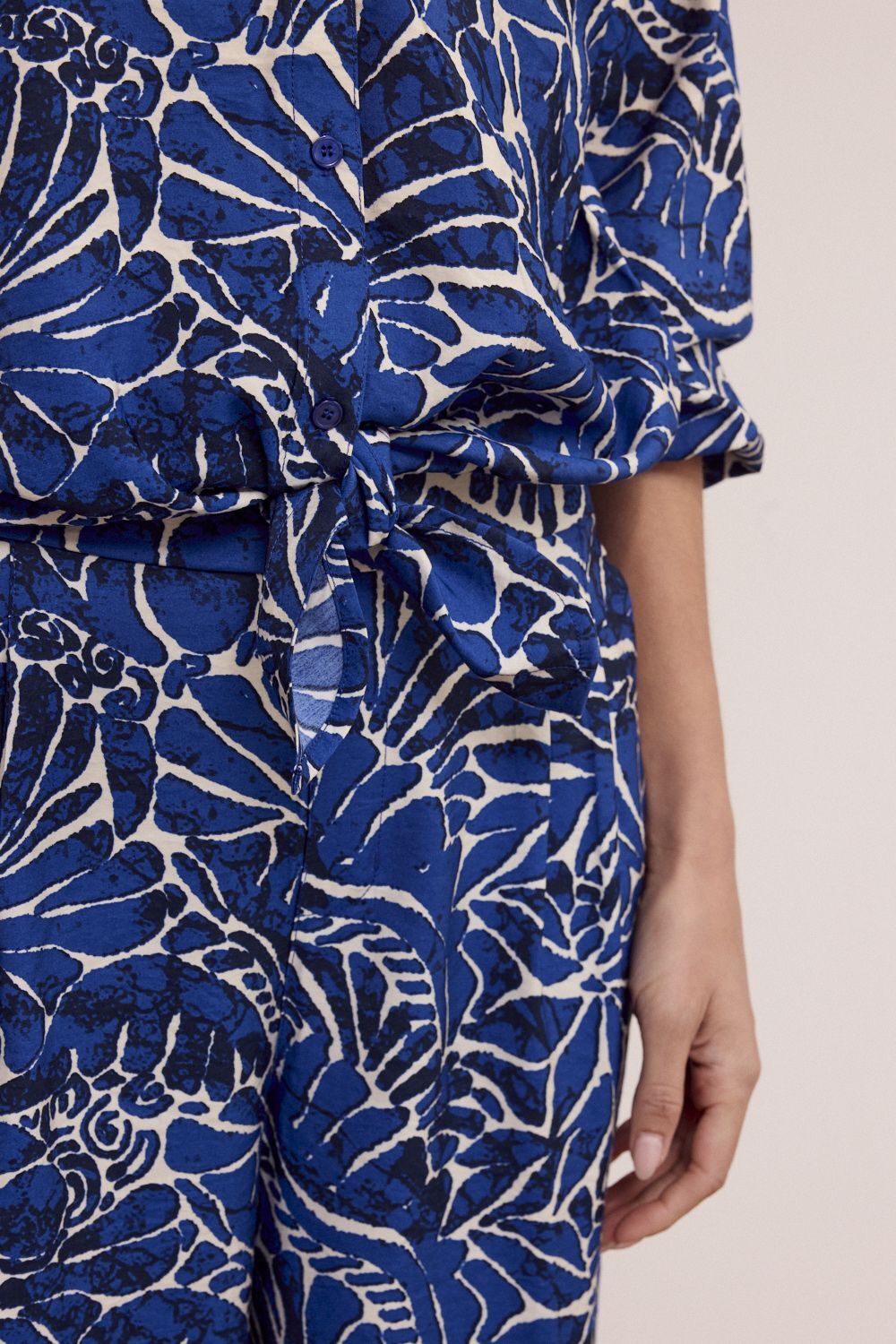 De Blouse Ink Bloom is een uitgesproken en stijlvolle blouse met een moderne, vrouwelijke uitstraling. Deze blouse is gemaakt van een comfortabele en soepele stofmix van 70% bamboe en 30% polyamide, wat zorgt voor een zacht draaggevoel, een mooie valling en prettig comfort gedurende de dag. De opvallende Ink Bloom print in de kleur Print Ink geeft de blouse een krachtig en artistiek karakter en maakt dit item tot een echte blikvanger. De klassieke kraag en knoopsluiting aan de voorzijde zorgen voor een tijdloze basis, terwijl de striksluiting aan de onderzijde een speelse en vrouwelijke twist toevoegt en de mogelijkheid biedt om de pasvorm subtiel te accentueren. De lange mouwen met elastische boorden geven de blouse een nonchalante, elegante uitstraling.