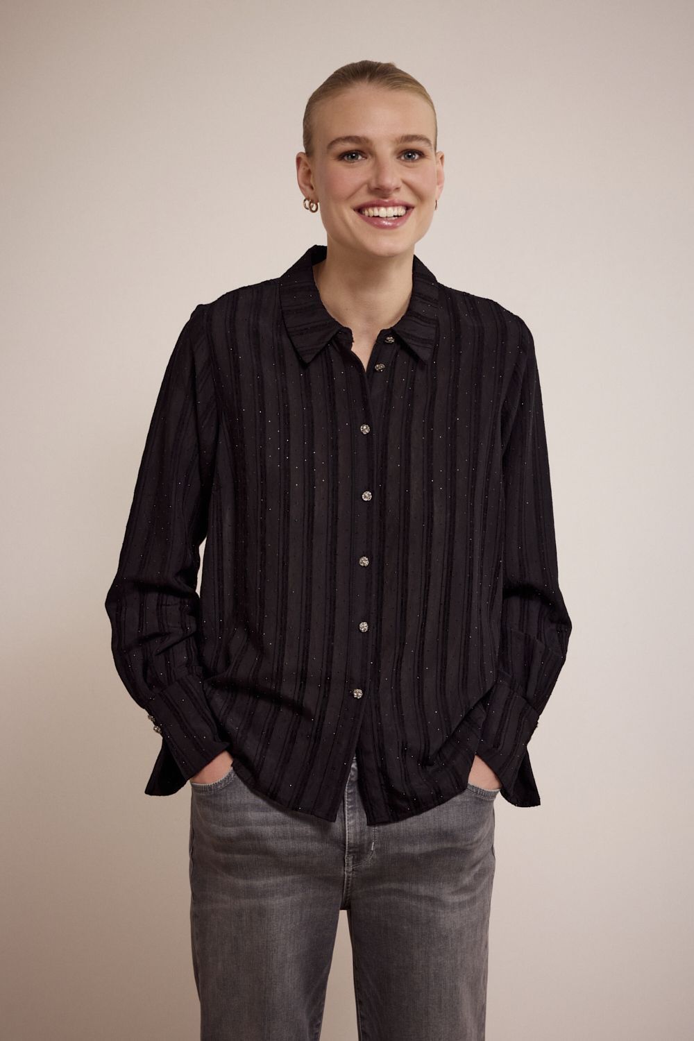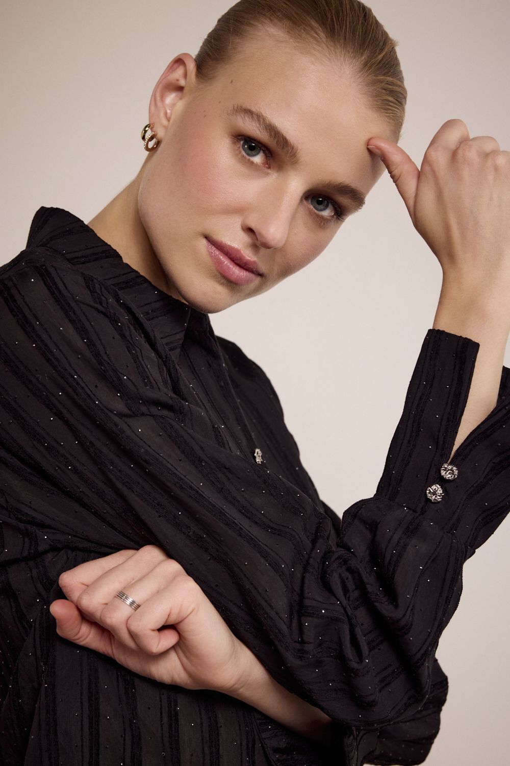 De Blouse Rhinestones is een verfijnde en glamoureuze toevoeging aan je wintergarderobe. Gemaakt van 84% viscose en 16% polyamide, biedt deze blouse een comfortabele, ademende pasvorm die perfect is voor de koelere maanden. De klassieke zwarte kleur maakt de blouse veelzijdig en eenvoudig te combineren met verschillende outfits. De subtiele rhinestone-details aan de voorzijde voegen een vleugje luxe en glamour toe, waardoor deze blouse ideaal is voor zowel een zakelijke look als een chique avondje uit.