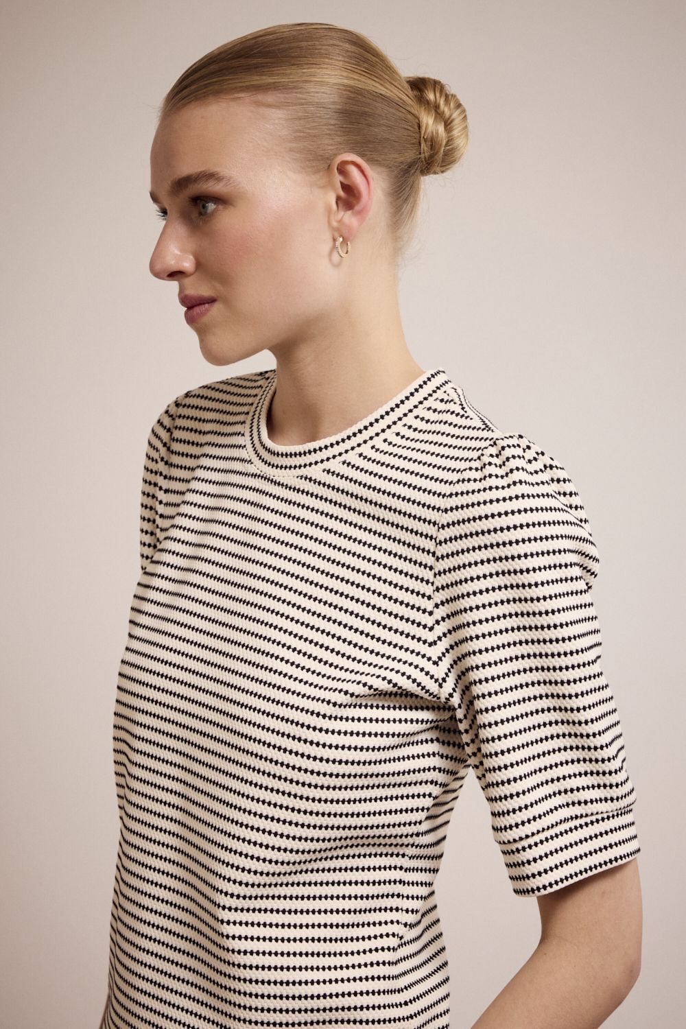 De Fancy Striped Top is een speelse en comfortabele toevoeging aan je dagelijkse herfstlooks. Gemaakt van een zachte mix van 70% polyester, 25% katoen en 5% elastaan, biedt deze top een lichte stretch en een prettige structuur die mooi in vorm blijft. De fijne streep in de kleur Stone Melange geeft het ontwerp een frisse, casual uitstraling, terwijl de subtiele glans in de stof zorgt voor een verfijnd accent.