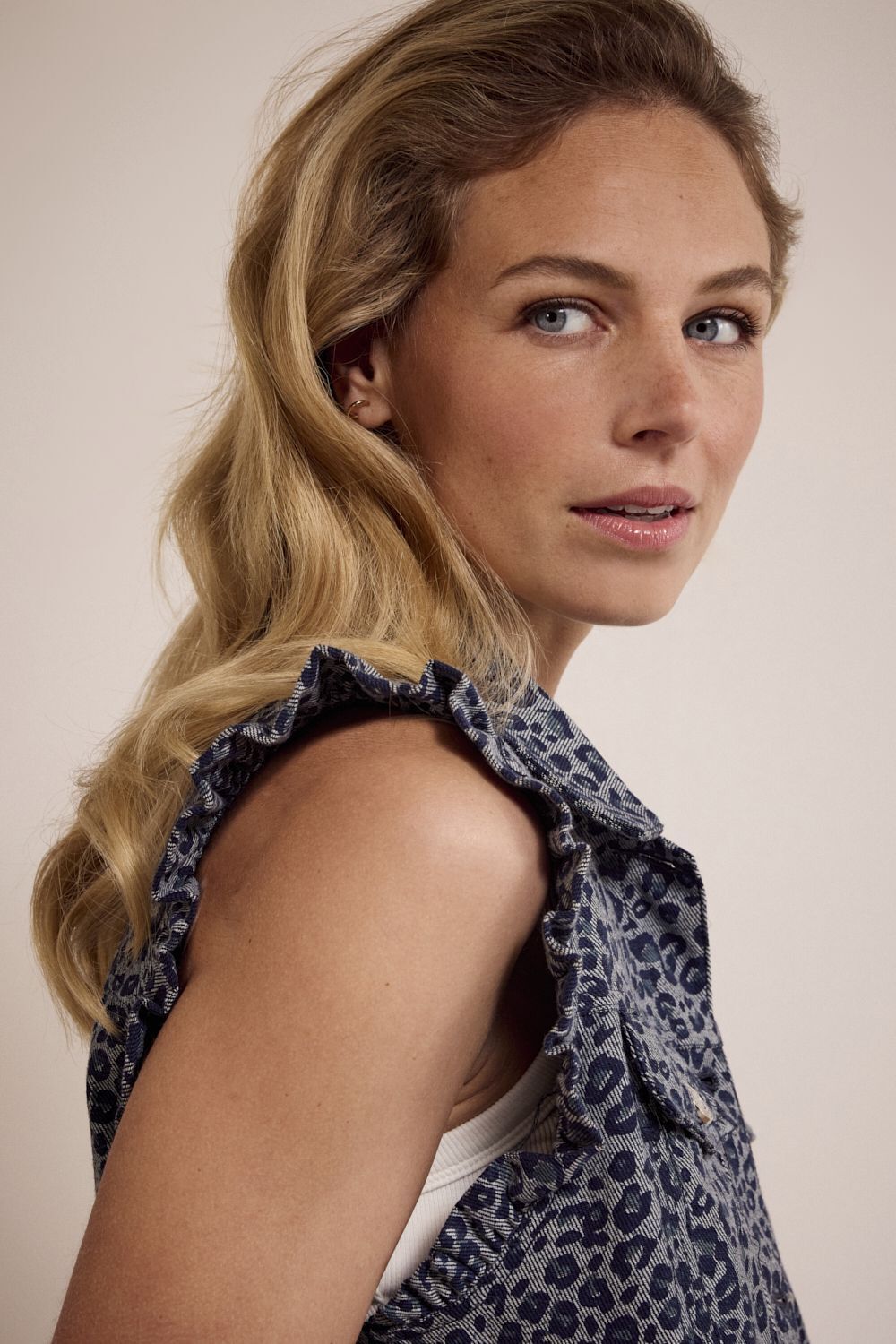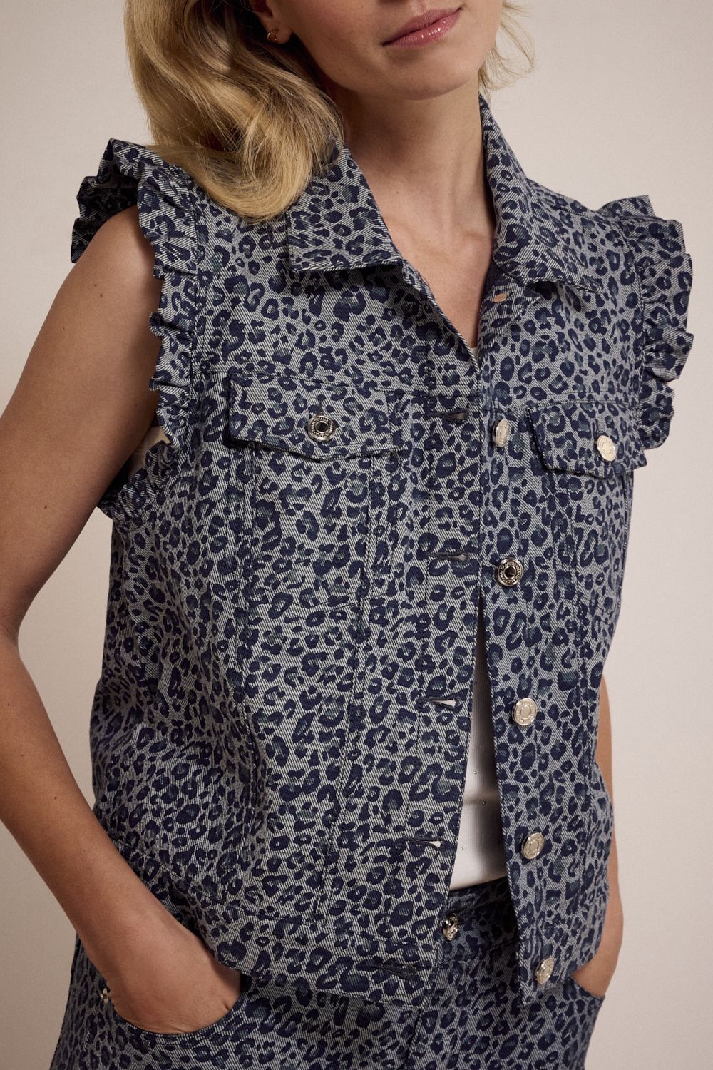 Het Leopard Denim Gilet is een gedurfde layering piece die je herfstoutfits direct een modieuze upgrade geeft. De blauwe denimbasis krijgt een verrassende twist door de ton-sur-ton leopardprint subtiel wild, maar stijlvol en goed te combineren. Gemaakt van 85% katoen en 15% polyester, voelt het stevig en comfortabel aan, met genoeg structuur om mooi in vorm te blijven.
