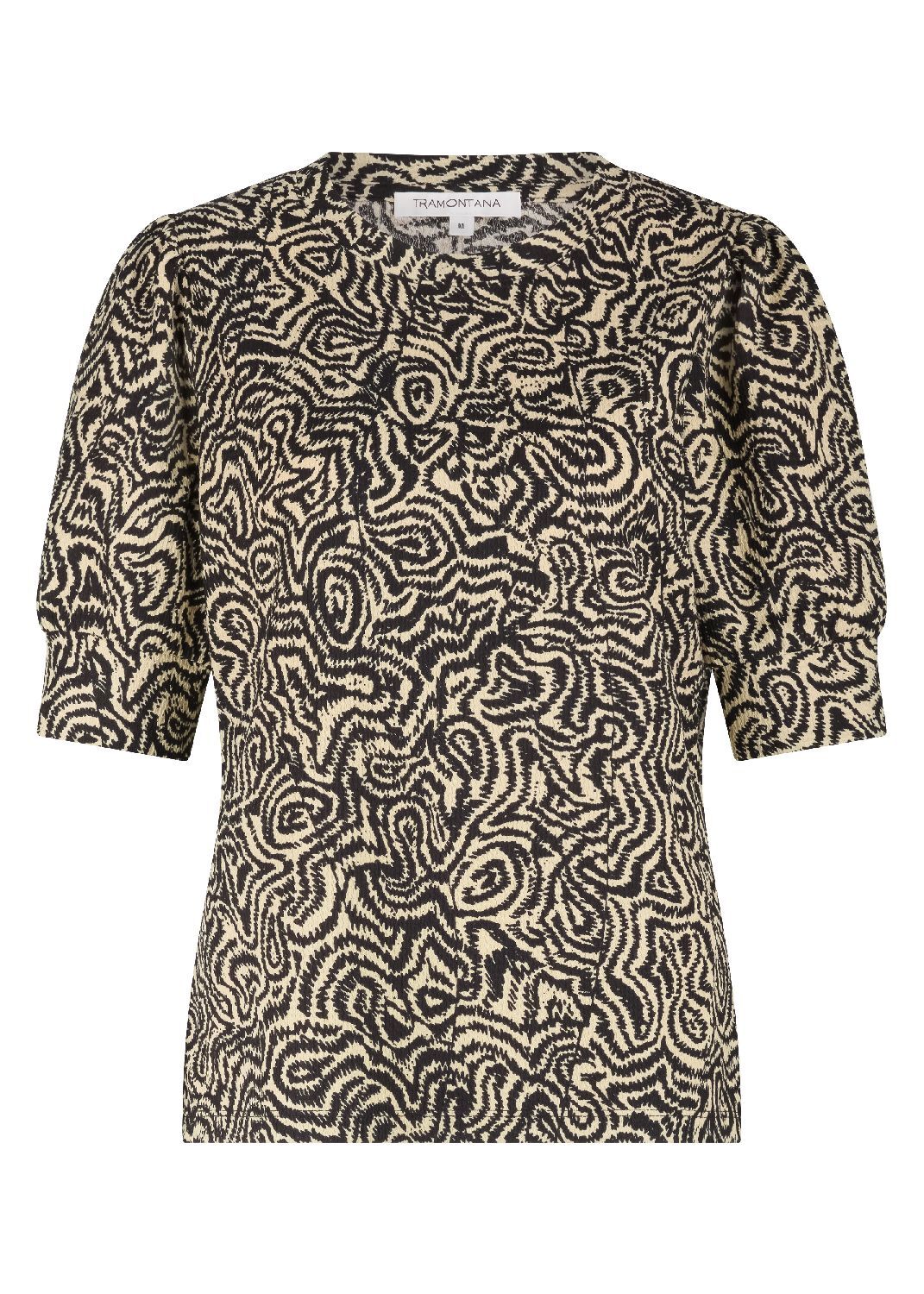 Tramontana Top Wandering Lines Print Blacks Pebble