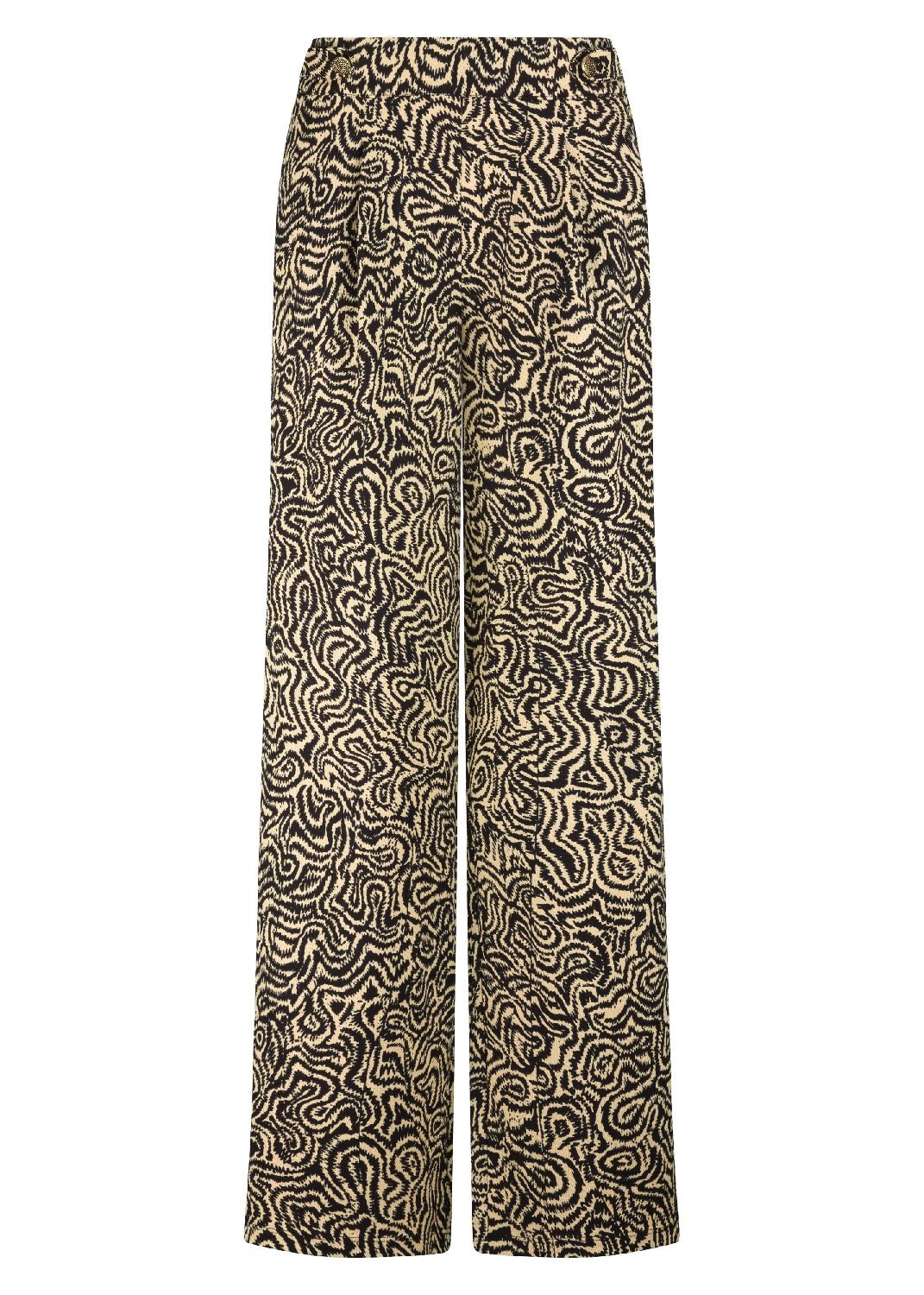 De Trousers Wandering Lines is een stijlvolle en eigentijdse broek met een opvallende print en een modern, vrouwelijk silhouet. Deze trousers is vervaardigd uit een comfortabele en soepele stofmix van 95% polyester en 5% elastaan, wat zorgt voor een prettig draaggevoel, lichte stretch en een mooie, vloeiende valling. De grafische Wandering Lines print geeft het ontwerp een speelse maar verfijnde uitstraling en maakt de broek direct tot een statement piece. De wijde pijpen creëren een elegant, verlengend effect, terwijl de comfortabele taille zorgt voor een flatterende pasvorm.